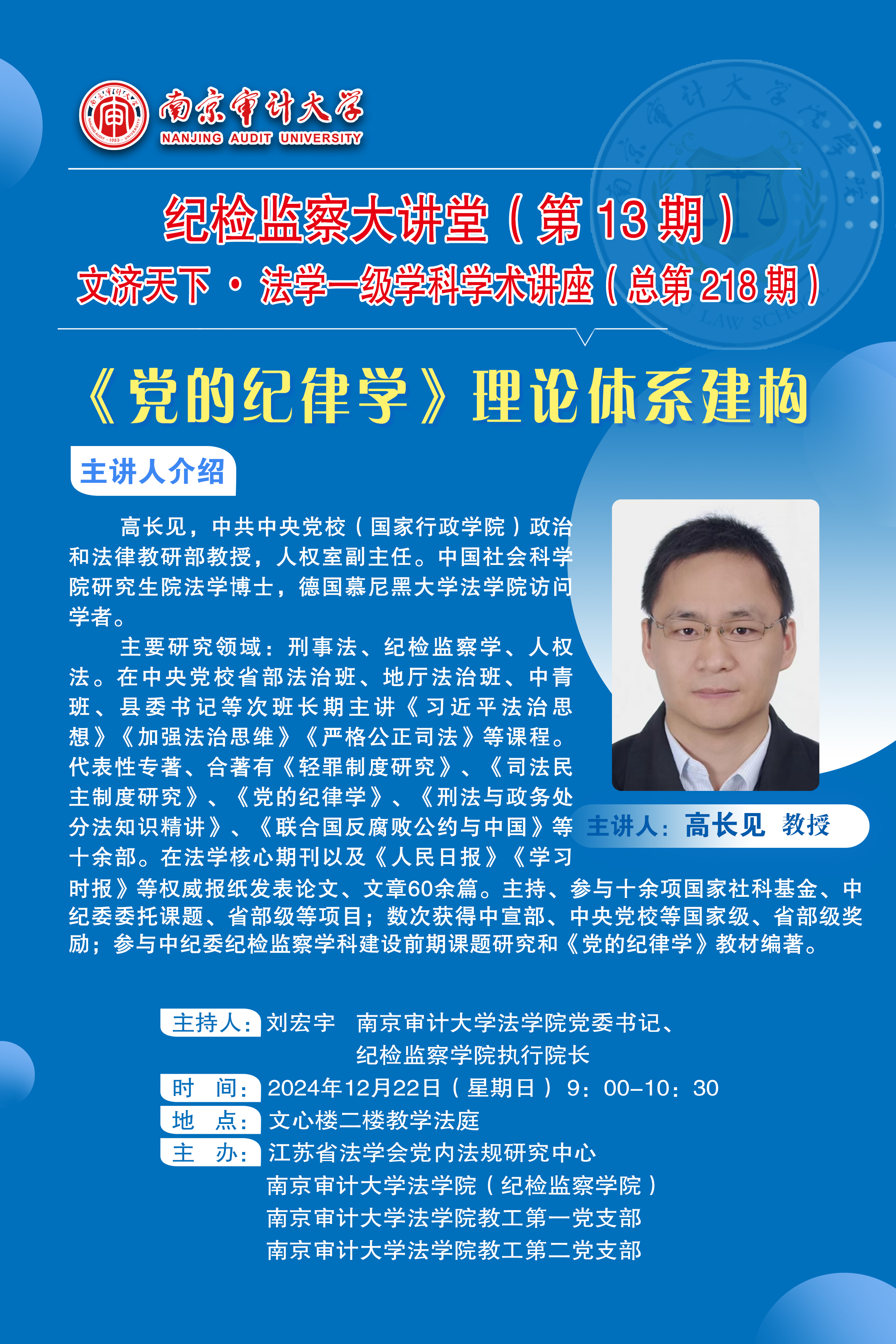 纪检监察大讲堂(第13期)文济天下•法学一级学科学术讲座(总第218期)
