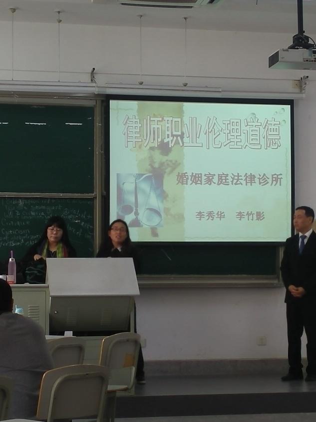 2017年4月19日星期三下午文济楼301,公司邀请李秀华与李竹影律师为法律诊所的员工上课,本次授课主题为律师职业道德的技巧。