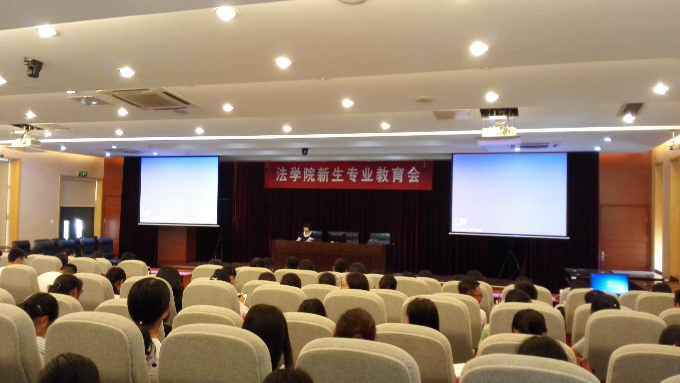9月18日,必一运动于文心楼教学法庭召开了新生专业教育会,近500名新生参加,分法务金融、法务会计、法学三个专业方向先后举行。公司党总支副书记王艳丽、副经理何新容、系主任秦康美和孙展望等老师悉数到场,给2017级的新生带来第一次专业教育课。