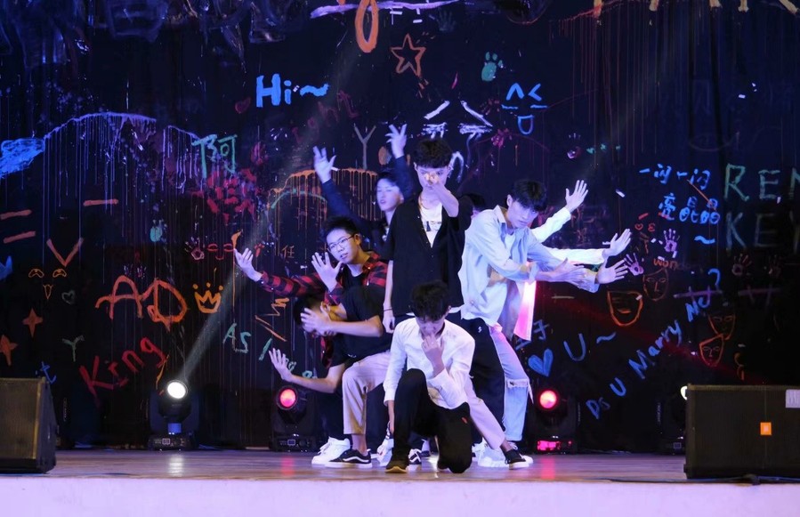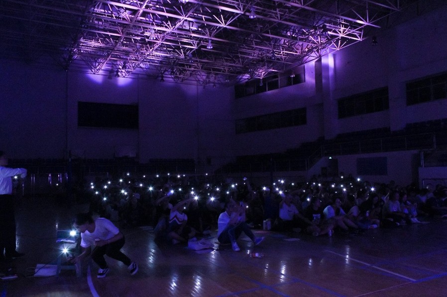 南京工业大学作为南审的友好交流学校,SSO街舞团为晚会带来了开场街舞《forever flower》,精彩纷呈的节目由此开始。声乐团的同学们带来的《倾城》《儿时》《漂洋过海来看你》等歌曲,歌声悠扬、真情流露,同学们打开手电伴着节奏一起挥动,点燃晚会气氛。SF轮滑社、冰魄棍道社、影风空手道社等社团带来的高难度表演更是将晚会气氛推向高潮,尖叫连连、掌声不断。学长郑枭更是以过来人的经验和小萌新们分享了学习的心得感悟。晚会中最惊喜的节目莫过于必一运动老师们带来的歌曲。任凡副教授与两个可爱的孩子带来一首《小叮当》,全场沸腾,一同合唱。胡天成副教授的一首《过雪山草地》唤起同学们要不忘历史,不断前行。
