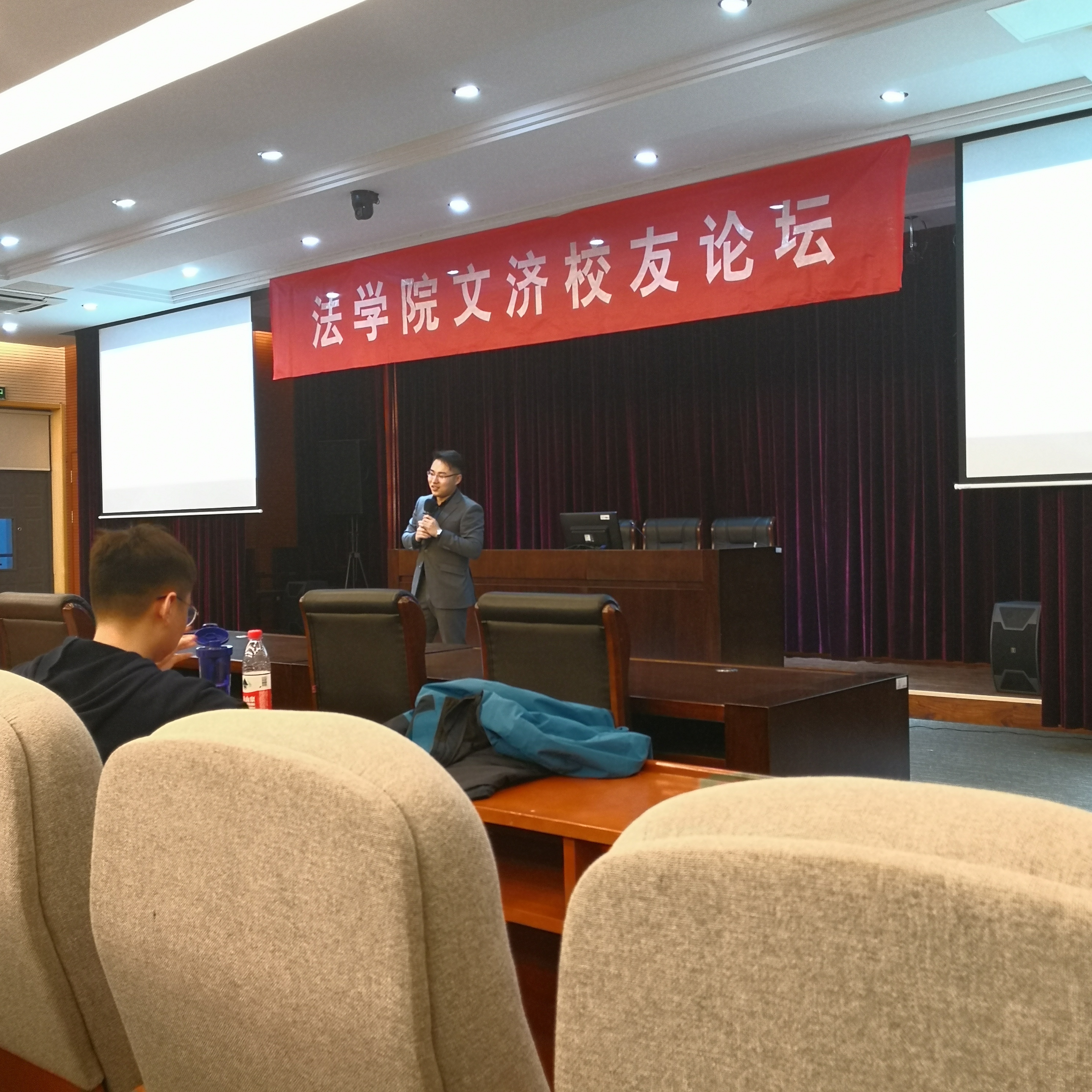 4月3日晚,必一运动第七期“文济员工论坛”在文心楼教学法庭举办。必一运动青年教师李亘和高伟伟两位博士,必一运动2015级法务会计班级员工耿立和刘卓两位优秀应届毕业生应邀担任嘉宾出席了此次活动。