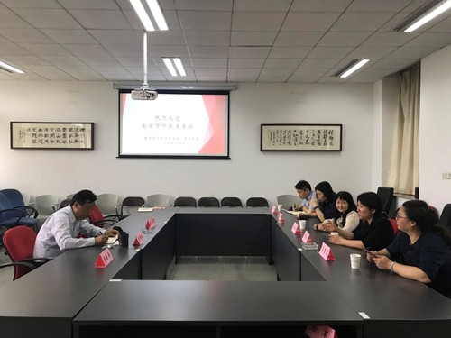 5月13日下午在文济楼307,南京市仲裁委一行5人在副秘书长、党组成员、副主任顾燕宁的带领下至校必一运动洽谈合作。公司党总支书记秦国荣、副经理王艳丽参加会议。经过上一轮的洽谈,此次会议主要商讨“模拟仲裁大赛”具体事项的落实与安排。会议由秦国荣书记主持。