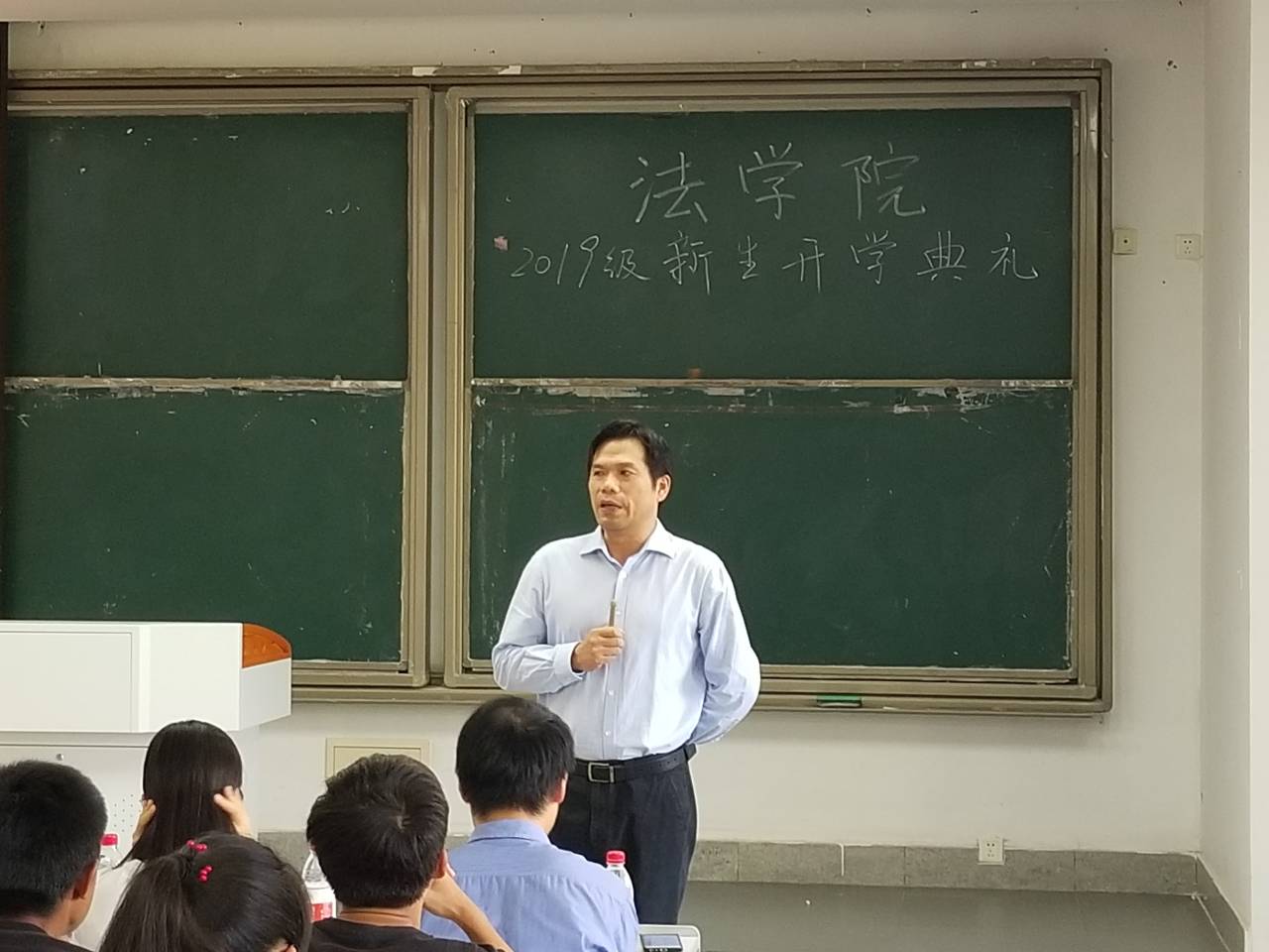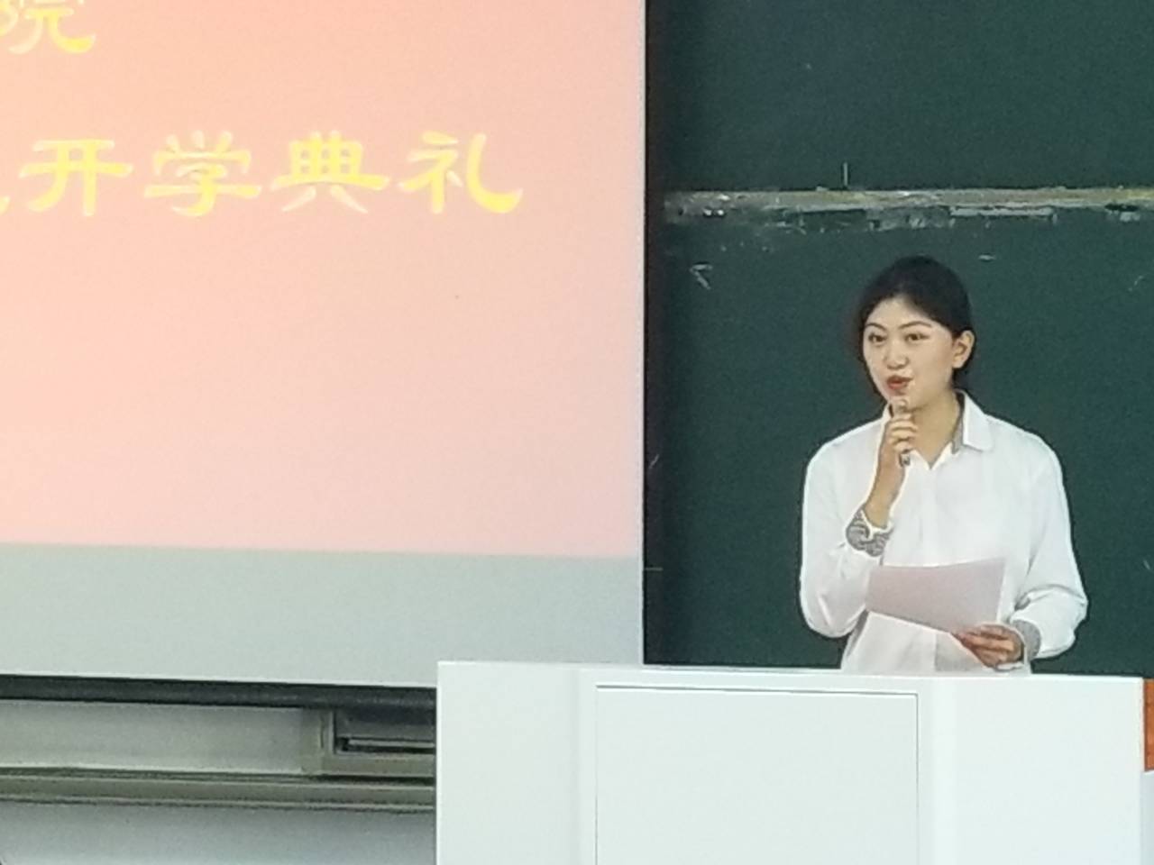 刘惠文同学作为新生代表发言,她表示作为一名“法学人”,定会莫负四年芳华,敬畏法律,追寻正义,以“十年饮冰,热血难凉”的精神奋发前行,实现法律人的担当。路广老师作为教师代表发言,表达了对新生们的欢迎,指出大家在大学四年中,将在教室、图书馆、课堂上和老师的交流中重新找到自己,找到将要奋斗的事业和未来,也将学会竞争与协作、倾听与表达、严格与宽容;同时路老师勉励大家要刻苦学习,“不驰于空想,不鹜于虚声”,尽快培养起自我管理和自我学习的能力,“闻鸡起舞”,“撸起袖子加油干”。