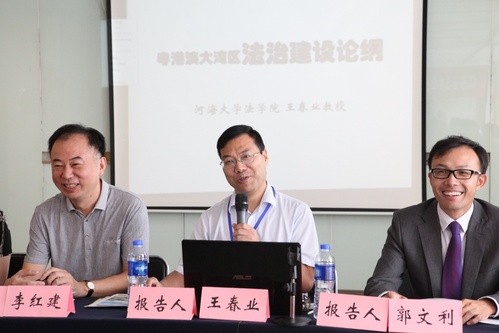 王春业教授以《粤港澳大湾区法治建设》为主题进行报告,王教授具体分析了大湾区的形成历程和具体现状,并指出了大湾区法治建设目前正面临的两种社会制度、三个法域、不同行政级别、不同立法权限、法治建设水平差异大等五点困境与挑战。对此,王教授富有针对性地提出了四点法治建设必须把握的关键问题:以政府推进为主进行大湾区法治建设;以香港和澳门国际化标准作为大湾区法治建设的标准;创新大湾区法律规范的供给方式;以国家对广东多元化立法授权作为大湾区法律建设突破口。