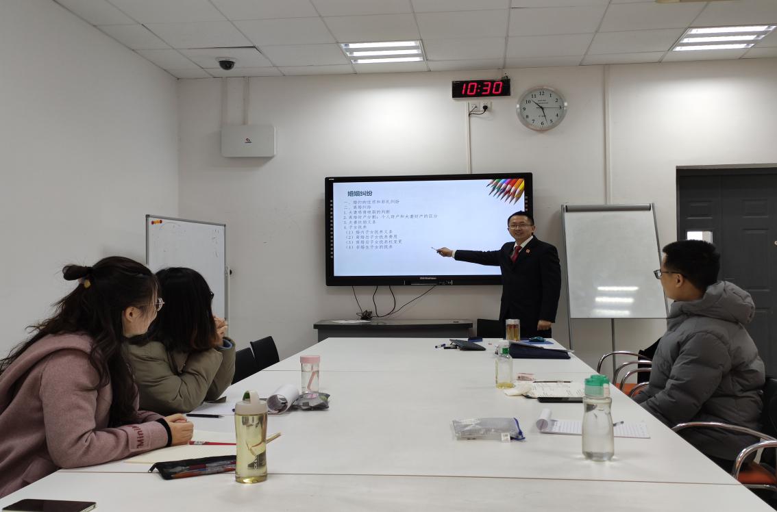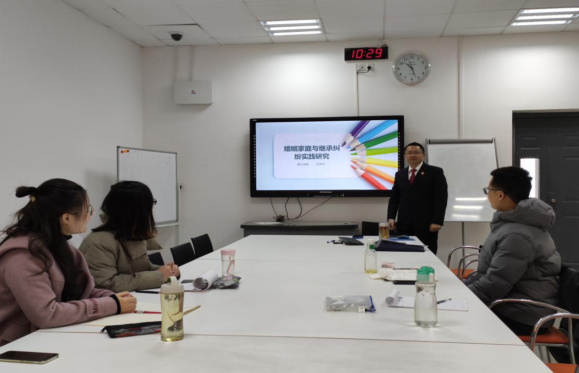 2019年12月4日上午,南京市浦口区人民法院汪会中法官走进公司研究生课堂,为4位法律(法学)研究生带来一堂婚姻家庭继承教学研讨课。