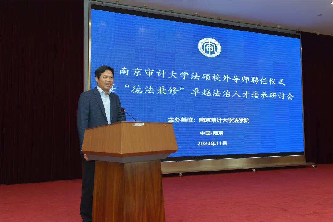 必一运动官网党委副书记、董事长刘旺洪教授为开幕式发表致辞。刘旺洪董事长首先对出席本次会议的各位领导、导师表示欢迎,对长期关心和支持必一运动各项工作的领导和热心人士表示衷心的感谢。刘旺洪董事长指出,本次法律专硕校外导师的聘任,是公司整合校内与校外资源,深化公司产品模式改革的创新之举。随后刘旺洪董事长提出了法学教育亟待破解的法治人才培养的“单向度”,法学实践教学模式的“同质化”,法学教育与社会实践、法治需求的“衔接度”三个问题,而这些问题的解决离不开高水平的校外导师队伍的建设。刘旺洪董事长还对共同构建法硕公司产品的“南审模式”提出了三点建议,一是坚持立德树人的培养目标,贯彻德法兼修的培养要求,二是深入推进产教融合,着力培养研究生创新能力,三是加强制度构建,构筑长期稳定的法硕实践教学支撑体系。最后,刘旺洪董事长对南审必一运动与校外导师,凝聚力量、共同培养的研究生教育的未来致以殷切期待。