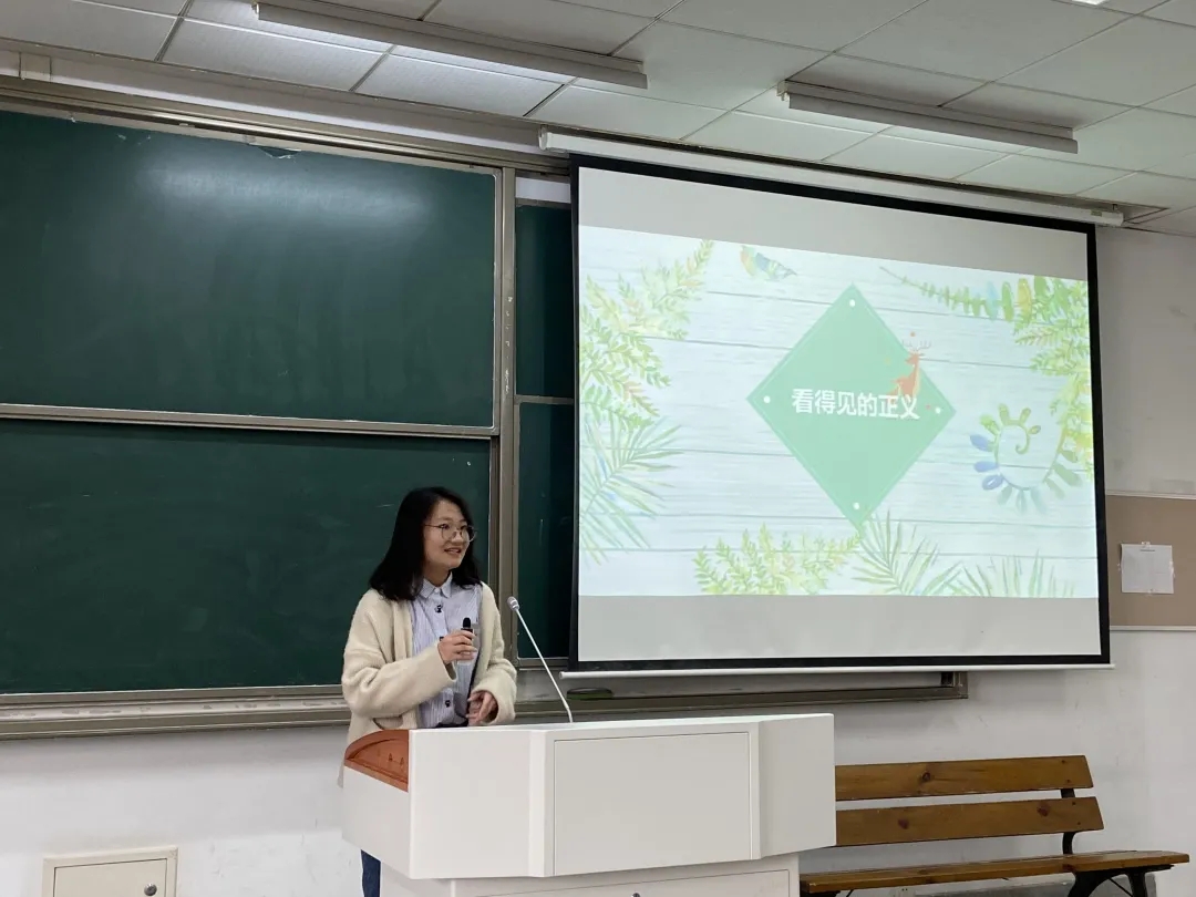 第三组由任凡老师指导的《看得见的正义》阅读小组进行展示,同学们展示了阅读过程,并表示通过阅读,深刻理解了程序与实体的作用,通过分享“张玉环案”、“张志超案”等案例,充分理解了程序正义对司法制度的重要性,深刻明白了要尊重程序以实现中国司法制度的良性发展。