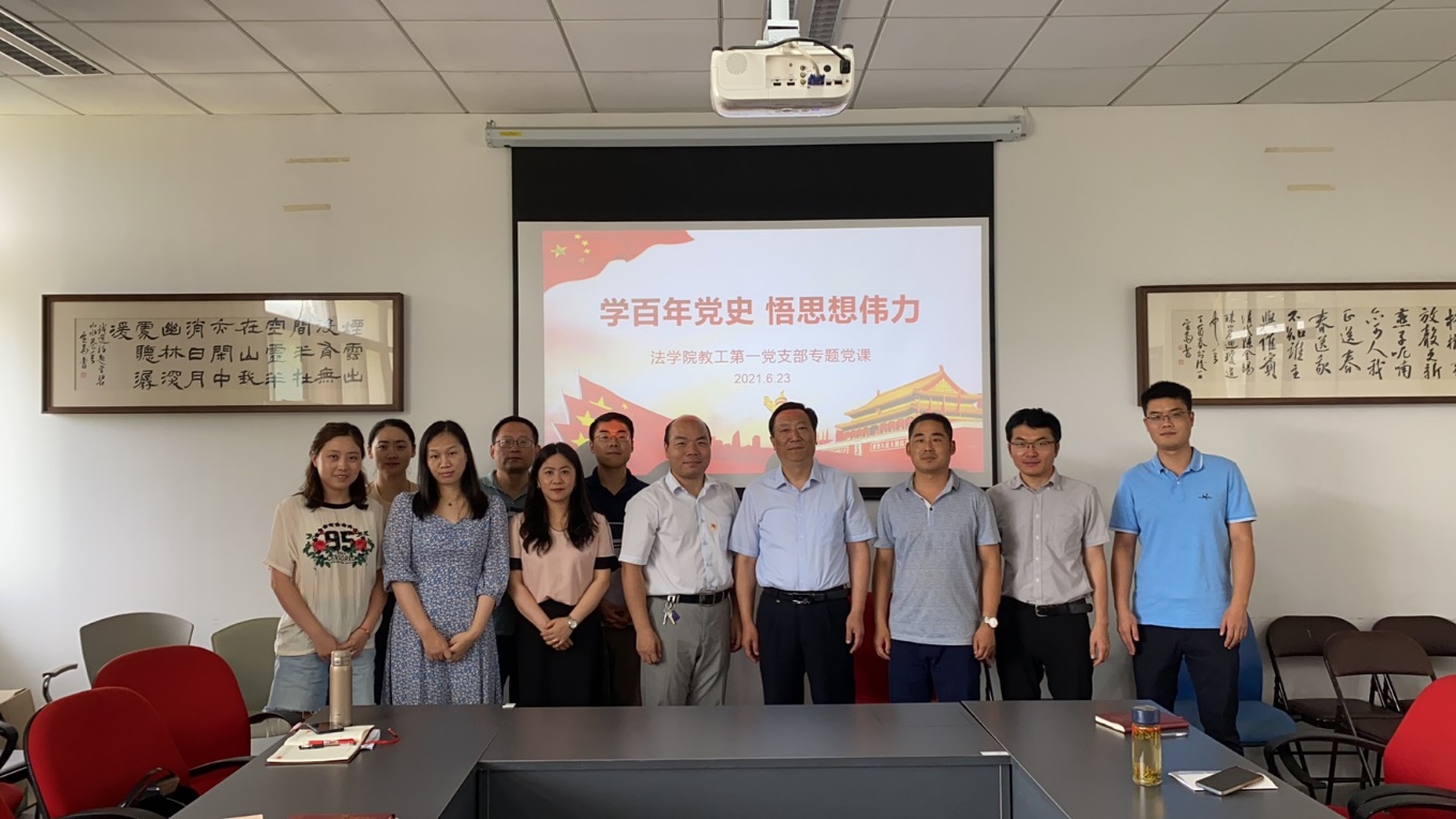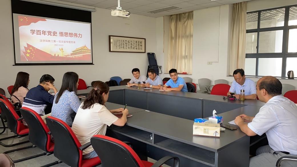 研讨会由支部书记靳宁同志主持。首先,靳宁同志以“习近平法治思想与中国特色刑事法治理念的形成”为题,向支部同志做了报告。靳宁同志结合自身学习习近平法治思想的心得体会,从政策、立法、司法、治理等四个方面阐释了习近平法治思想对当代中国刑事法治的深刻塑造,展现了习近平新时代中国特色社会主义思想伟力。随后,支部同志纷纷结合自身的专业背景与个人经历,分享学习党史、学习习近平法治思想的心得体会,共同回顾党的百年历史,尤其是党领导人民进行法治建设的历史。