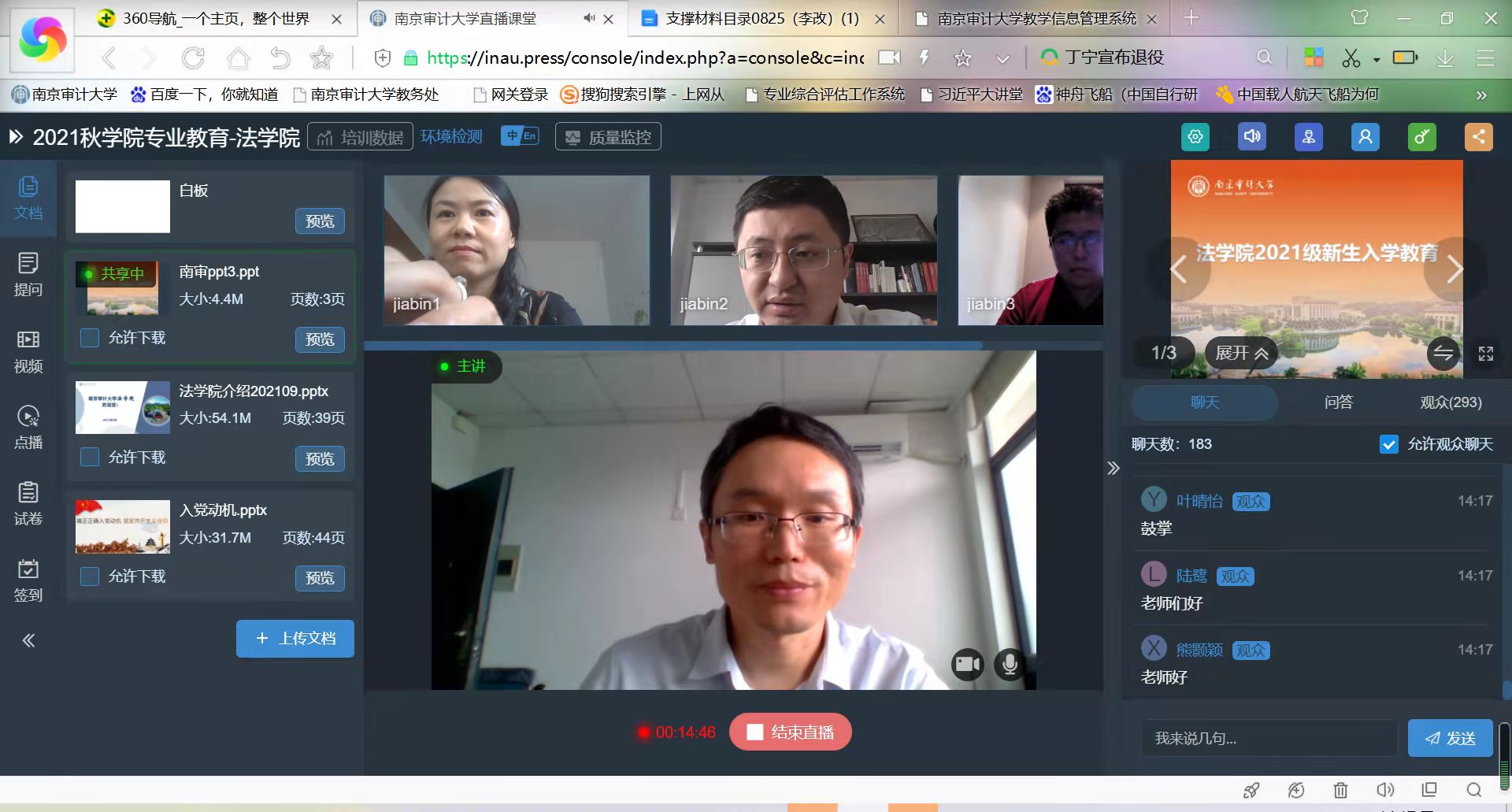 徐彰副经理介绍了学院的公司产品情况,南审法学研究生教育虽然历史短,但在全体师生的努力下取得了一系列成绩。他提醒同学们在本科阶段要有目标、有规划地学习,打好专业基础,培养思辨能力,争取在四年之后,能够选择自己感兴趣的专业方向继续深入学习,进一步提升自己的法律理论素养,增强解决实际法律问题的能力。
