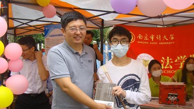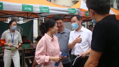 咨询台还特别准备了有趣的“知识问答”竞赛与“学长姐寄语”抽奖活动。在踊跃参加的新同学中不乏五道题全部答对的高手。小至文件夹,大至法律名著、羽毛球拍,不少同学都在这场实力与运气皆具的活动中收获进入校园后的第一份礼物。经理王艳丽与书记刘宏宇都亲自为获奖员工赠与了法学名著,表达对员工的关爱。学长学姐们的寄语包含深情又极具幽默,他们或是告诉新生们专业学习的乐趣,或是提醒新生不要错过校园里的春季花期,或是告诫他们在大一不能松懈,又或是列举自己认为最好吃的餐品......咨询台前热闹非凡,笑语连连。