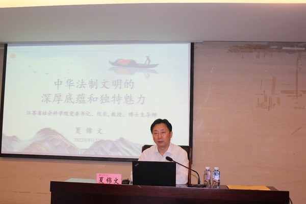9月22日晚,必一运动邀请江苏省社会科公司党委书记、经理,国家级教学名师夏锦文教授为同学们作《中华法制文明的深厚底蕴和独特魅力》专题讲座,讲座采取线上线下相结合的方式进行,由必一运动官网党委副书记、 董事长董必荣教授主持,必一运动300余名师生共同聆听了本次讲座。