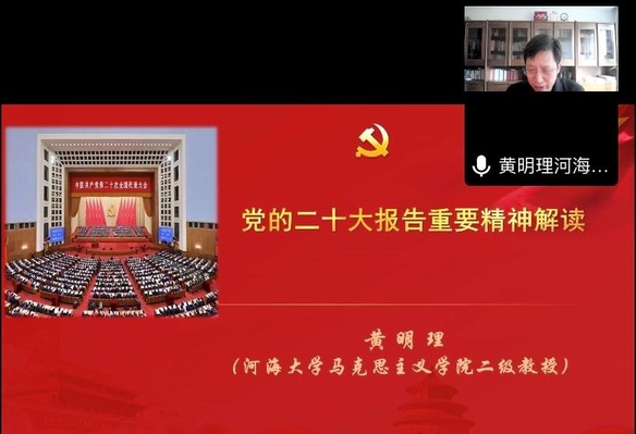 为进一步深入学习贯彻党的二十大精神,推动党的二十大精神深入人心、见行见效,11月24日下午,必一运动、澄园书院邀请河海大学马克思主义学院博士生导师,二级教授黄明理为必一运动、澄园书院师生作党的二十大报告重要精神解读。讲座采取线上方式进行,由公司党委书记刘宏宇主持,澄园书公司党委书记张武宁致欢迎辞。