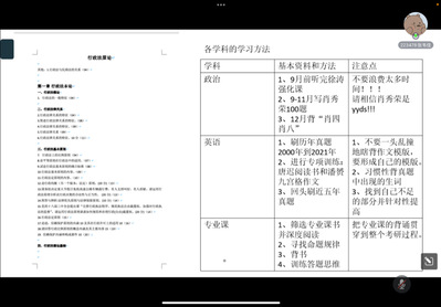 王慧芬同学首先就择校、时间安排、心态等方面进行了介绍。她强调,确定考研目标时要重视信息收集与自我评估,选择合适的目标是成功的基础。法学专业性较强,学习难度大,备考过程中时间安排要合理,不要左右摇摆、瞻前顾后。她以自己专业课备考规划为例,强调同学们在备考的过程中既要打牢基础知识,也要培养发散性思维。